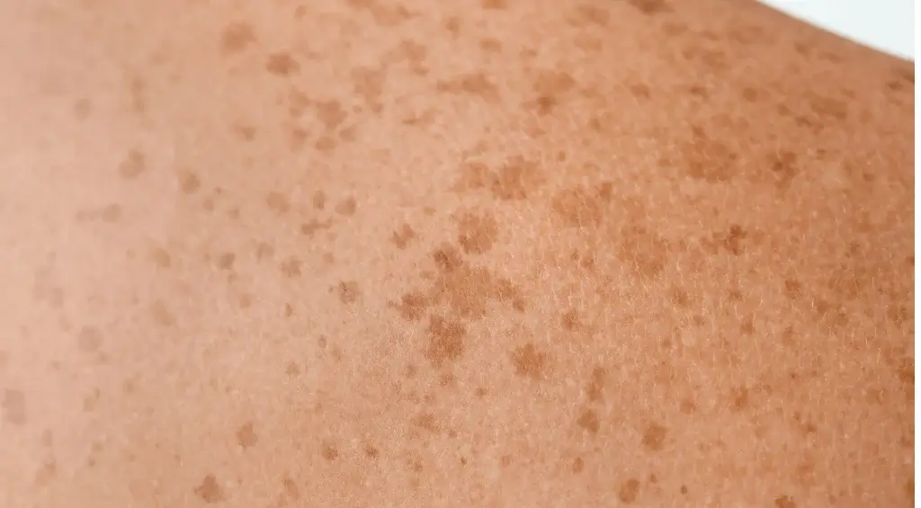 Quando a produção de melanina é excessiva, a pele desenvolve manchas mais escuras, como as sardas e o melasma.